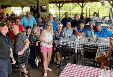 Teeing off in the fourth spot was another rag tag team, thrown together due to spouses missing, were KC, Bob, Craig and Dodi. This crazy foursome birdied number two, three, and five. Three Birdies is not too shabby. Craig was disappointed in only three birdies, as it felt subpar from last week. Also, his golf cart cover was blown off his golf cart on the fifth hole and hitting poor KC. It was that windy. Their strategy of playing the green tees paid off as they netted a second place finish with a 53.